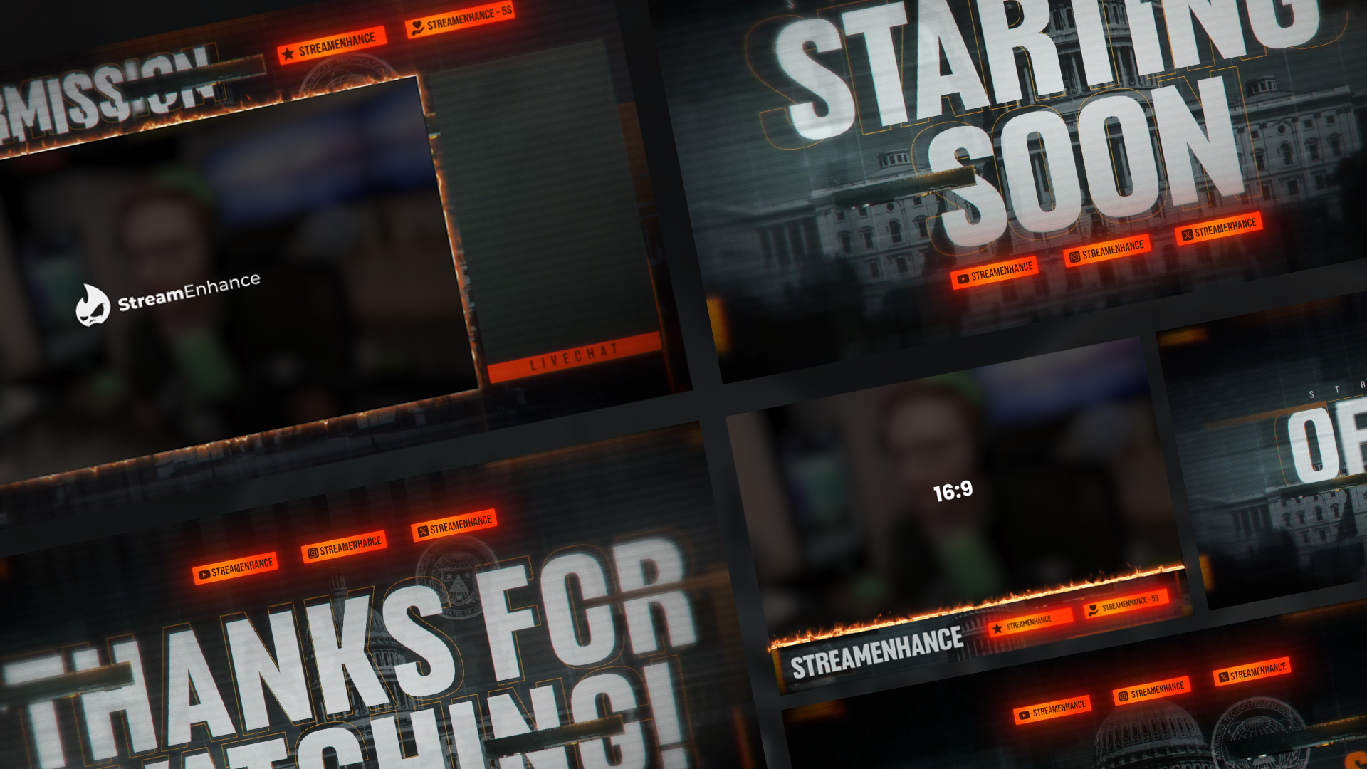 Enthalten sind: professionelle Szenenlayouts, knackige Transition und ein cleanes Webcam Overlay – alles designed, um dein Gameplay und deine Persönlichkeit perfekt in Szene zu setzen.