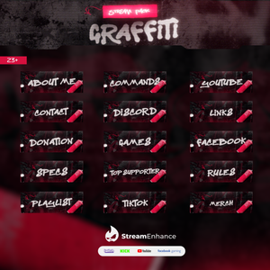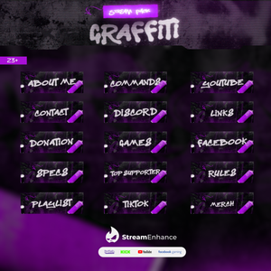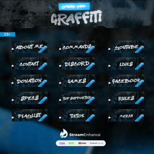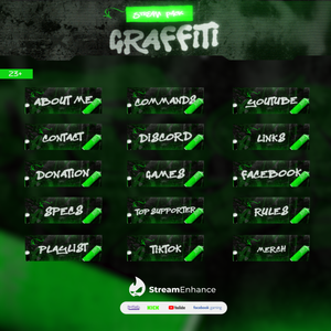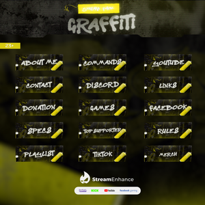 Setze Highlights in deinem Stream-Profil: 24 stylische Graffiti Panels, mit denen du Infos, Links und Kategorien auf deinem Twitch- oder Kick-Kanal professionell präsentieren kannst.
